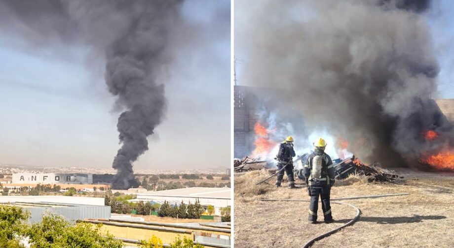 La quema de neumáticos, residuos, tarimas y madera generó una intensa movilización del H. Cuerpo de Bomberos del estado y Protección Civil; el siniestro quedó bajo control.