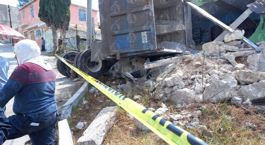 En la comunidad de Cantera de Villagrán, municipio de Tepeji del Río, un camión de carga impactó y derrumbó la fachada de una vivienda, resultando elevados daños y dos personas lesionadas que fueron trasladadas a una clínica particular para su atención.