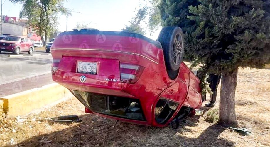 Dos personas resultaron con lesiones menores luego de volcar el vehículo en el que se desplazaban sobre el bulevar Felipe Ángeles, a la altura de la colonia ISSSTE de Pachuca. El percance vial se registró cuando el conductor, quien se identificó como Mauricio F.B., de 35 años, perdió el control de la unidad, cruzando el carril del Tuzobús y terminó por volcar sobre el camellón central.