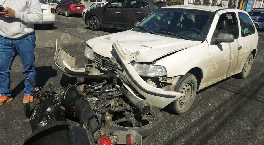 A su vez, en la intersección de las calles Allende y Belisario Domínguez, en el Centro de Pachuca, se encontraron dos vehículos e impactaron. En el siniestro están involucrados un auto Volkswagen Pointer, color blanco, con placas de Querétaro, y una motocicleta color vino con negro.