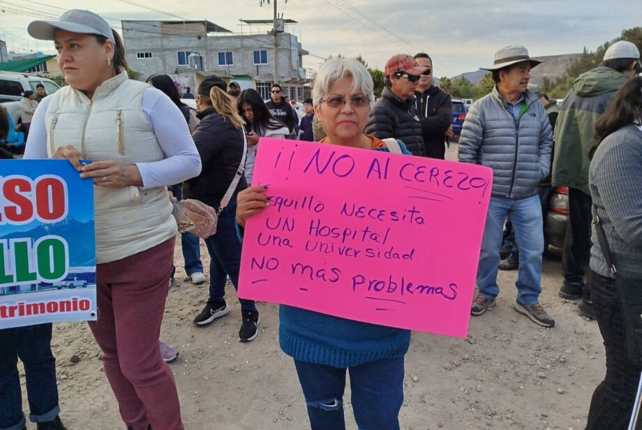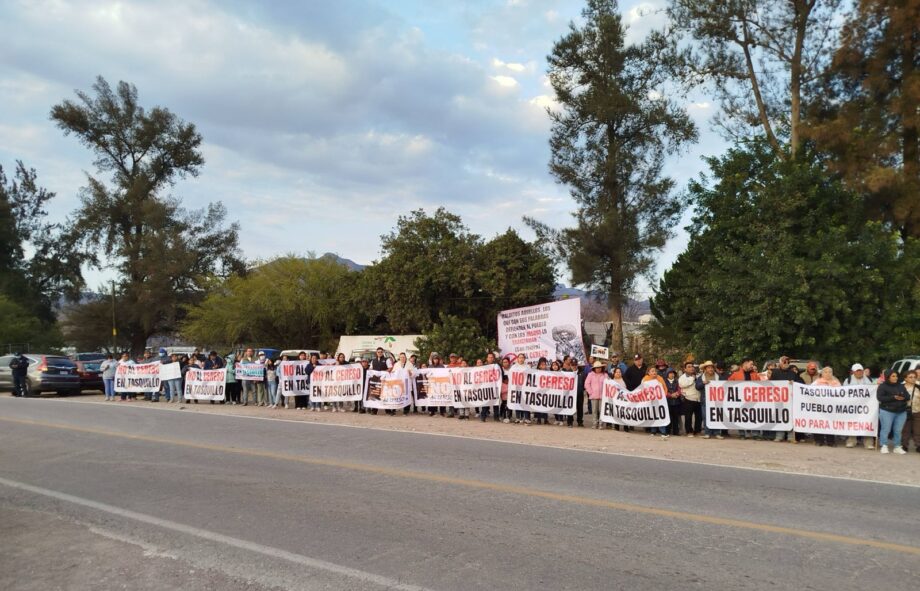 En una segunda concentración, realizada en la entrada de Tasquillo, a la altura de El Vivero, pobladores de ese municipio manifestaron su rechazo a la construcción del penal del Valle del Mezquital en su territorio, al considerar que se trata de un proyecto impuesto, carente de estudios técnicos socializados y sin consulta previa.