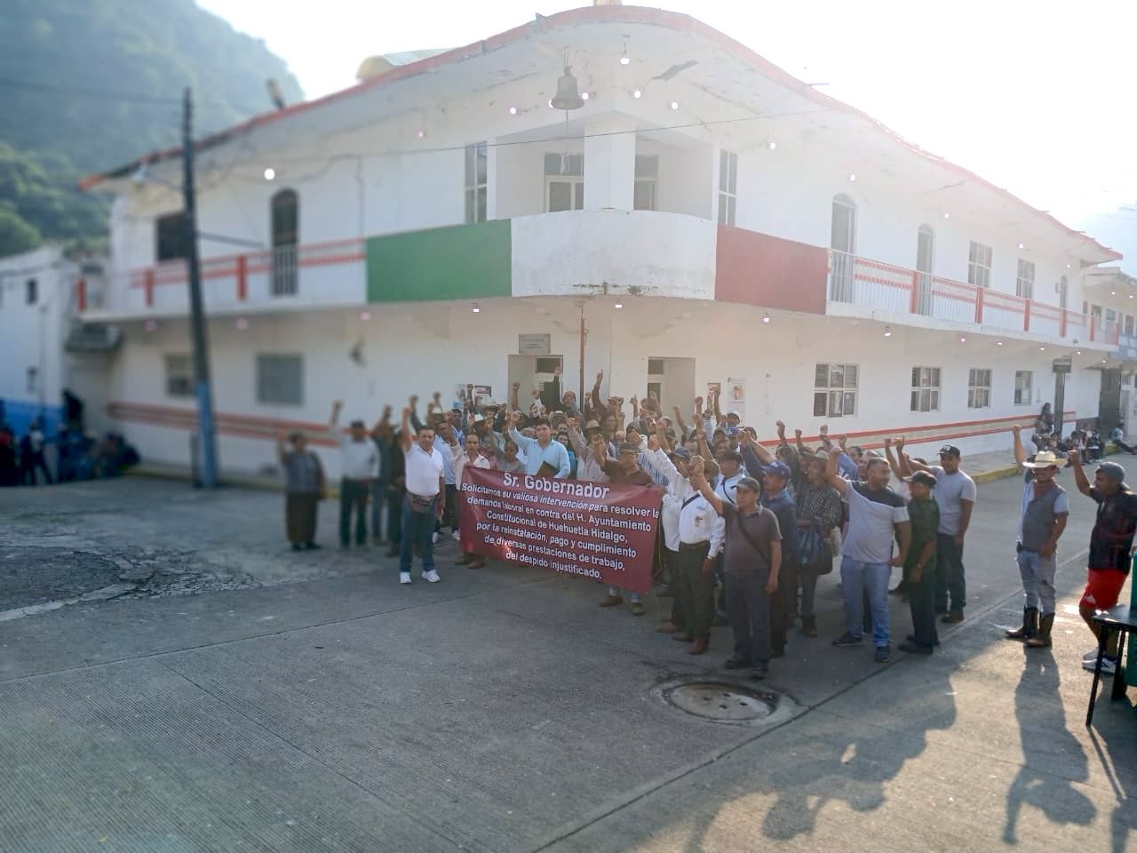 Un grupo de extrabajadores del Ayuntamiento de Huehuetla tomó este lunes las instalaciones de la presidencia municipal como medida de presión para exigir que se cumplan los laudos emitidos por el Tribunal de Arbitraje del Estado de Hidalgo, que ordenan en algunos casos su reinstalación y el pago de diversas prestaciones económicas.
