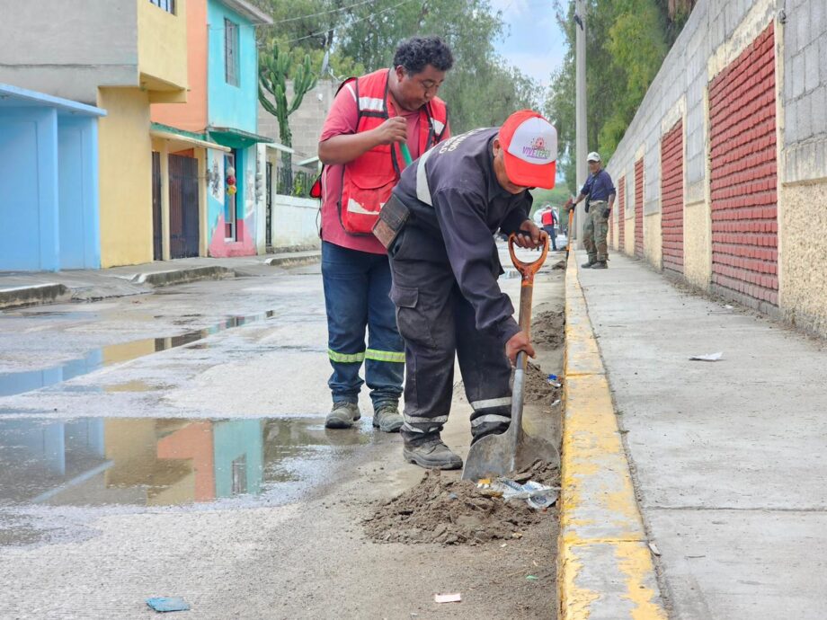 Las labores también incluyeron el retiro de 7 metros cúbicos de tierra y maleza, así como el marcado de pasos peatonales, acciones que fortalecen la seguridad vial y peatonal en la zona.